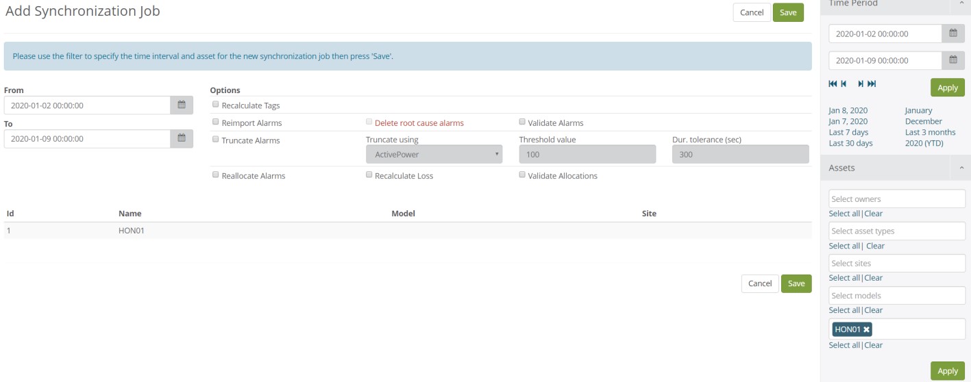Truncate | Truncate Alarms | Truncate end time for alarm it if the power production is started earlier then the alarm end time. The power output must be above a certain threshold configured in the backend. |