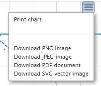 The chart may be exported to images in different formats, pdfs or svg vector images by clicking on the button in the upper right corner of the chart, as shown in the image below.