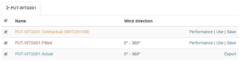 - Contractual – The asset models contractual power curve, specified by the manufacturer.