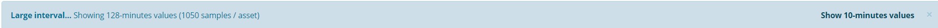 By default the Power Curve Analyzer displays 10 minutes average values from the turbine. To avoid slow performance 1.000 scatter points are loaded per graph as default. If the chosen time-period exceeds 1000 points for a turbine, the sample interval is increased. When this happens, a message will appear displaying the new sample interval and a function to override the 1.000 points per turbine limit: