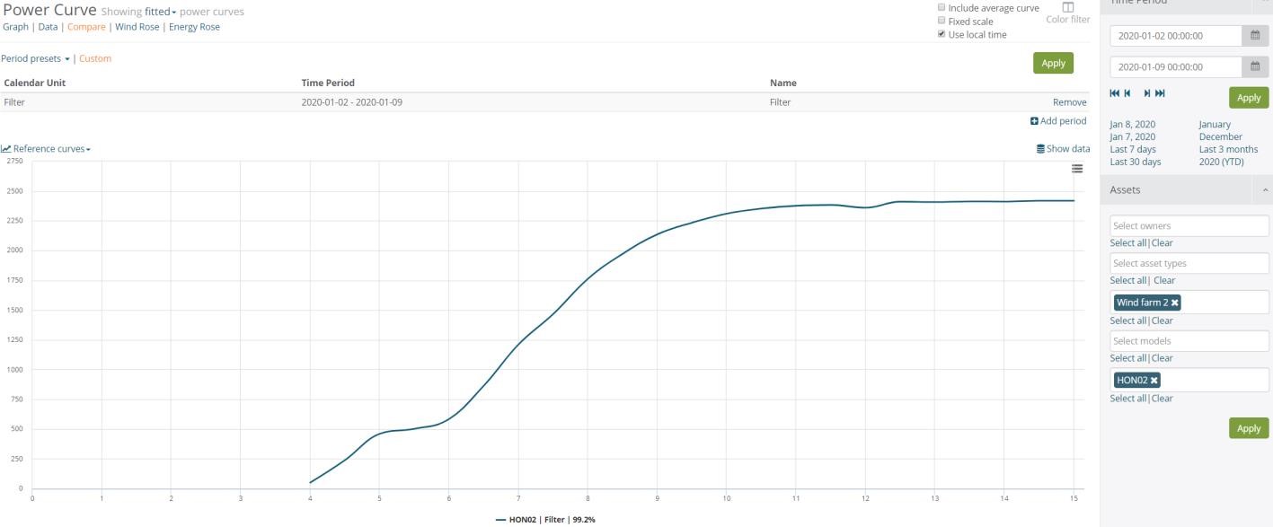 If the Power Curve is in multiple turbines mode, the turbine filter is used to select the specified turbines. Read more about this in the chapter 5.