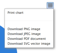 The chart may be exported to images in different formats, pdfs or svg vector images by clicking on the button in the upper right corner of the chart, as shown in the image below.