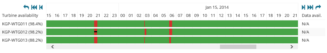 The application also shows the availability for each asset in the time line, and calculates both asset availability and data availability for a selected period.