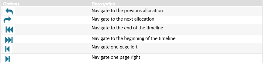 Allocations are shown on the timeline using colors relevant to each availability type. Allocations marked with a “black line”(