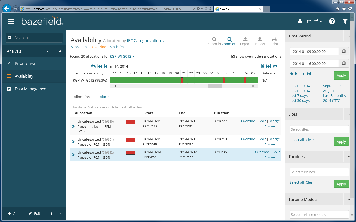 BazeField 6 now provides a brand new application called Availability which replaces the older Stop Analyser and Loss Analyser applications. The new Availability application has many new and enhanced features and enables the user to manage availability in a powerful and user-friendly way.
