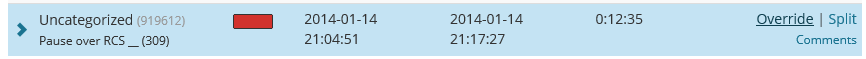 ) are manual override allocations that supersede an automatically generated allocation. When there are no allocations the timeline is displayed as green. Hold the mouse over an allocation in order to show a tooltip with the category and more detailed time information.