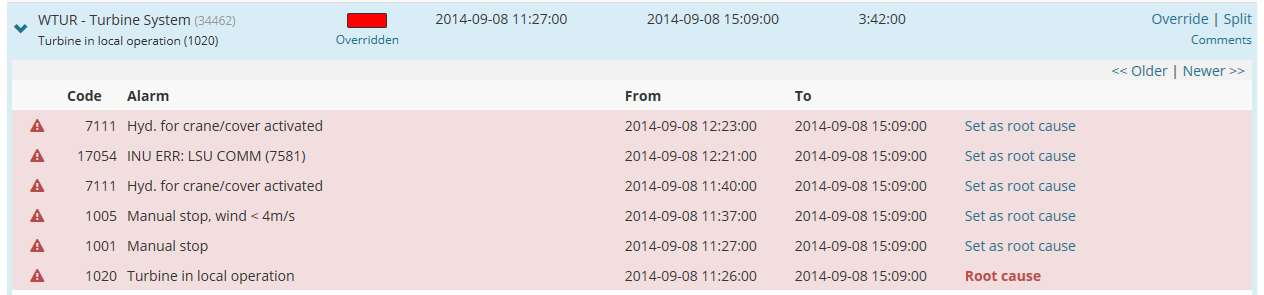 In order to improve availability, keeping track on all stops and alarms generated by the turbine control system it is essential to thoroughly investigate and understand the root error cause(s) and take actions on stop events.